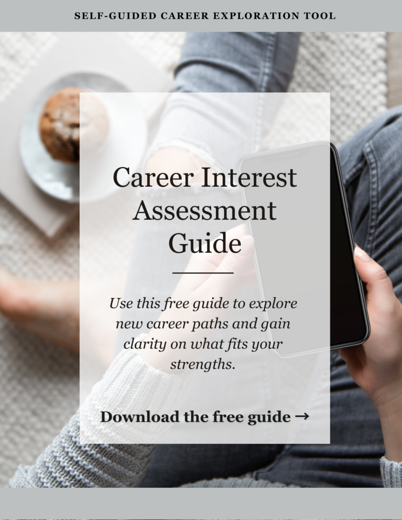 A 30-minute, one-on-one session designed to help you move from career confusion to clearer direction. This call builds on the free Career Interest Assessment Guide and the Career Exploration Workbook — offering personalized guidance beyond self-guided resources.